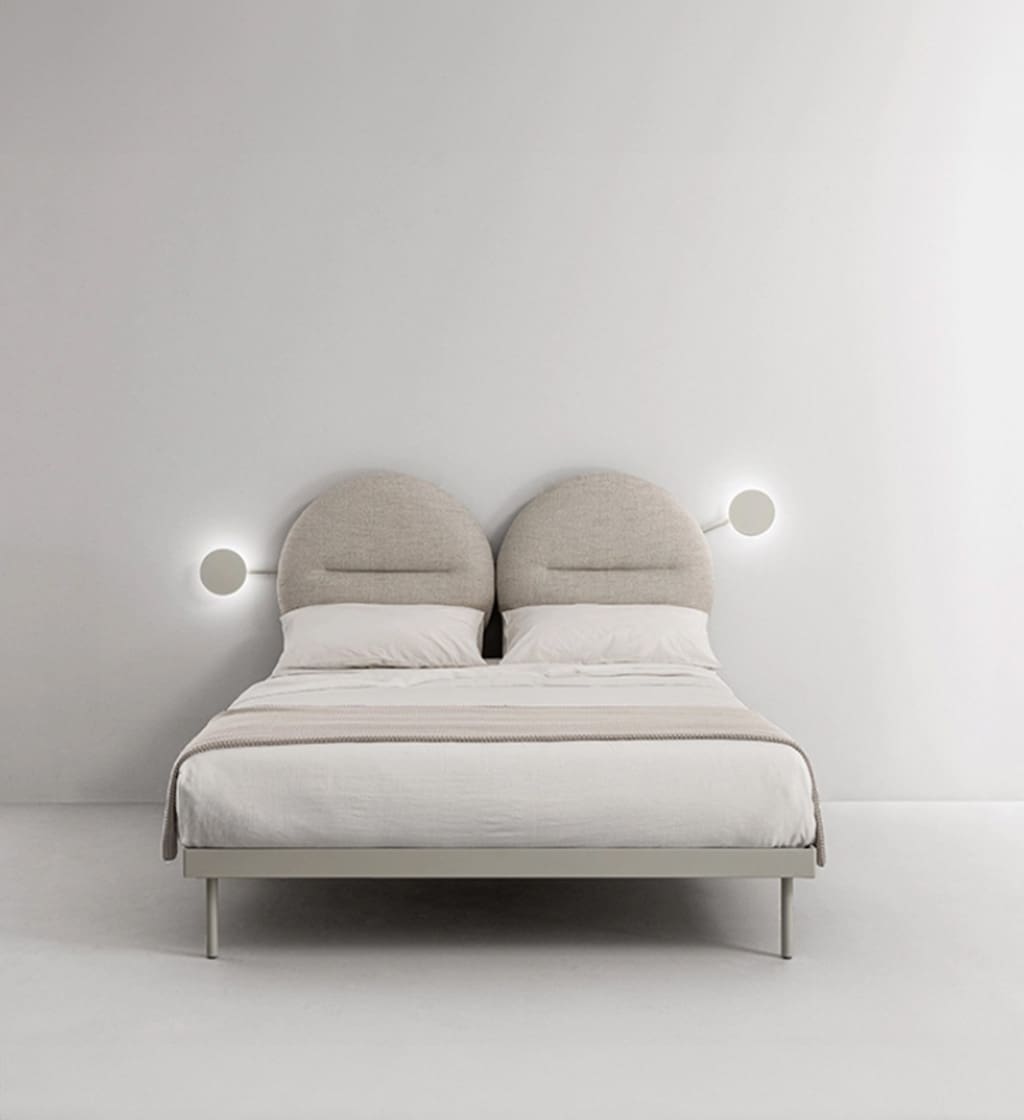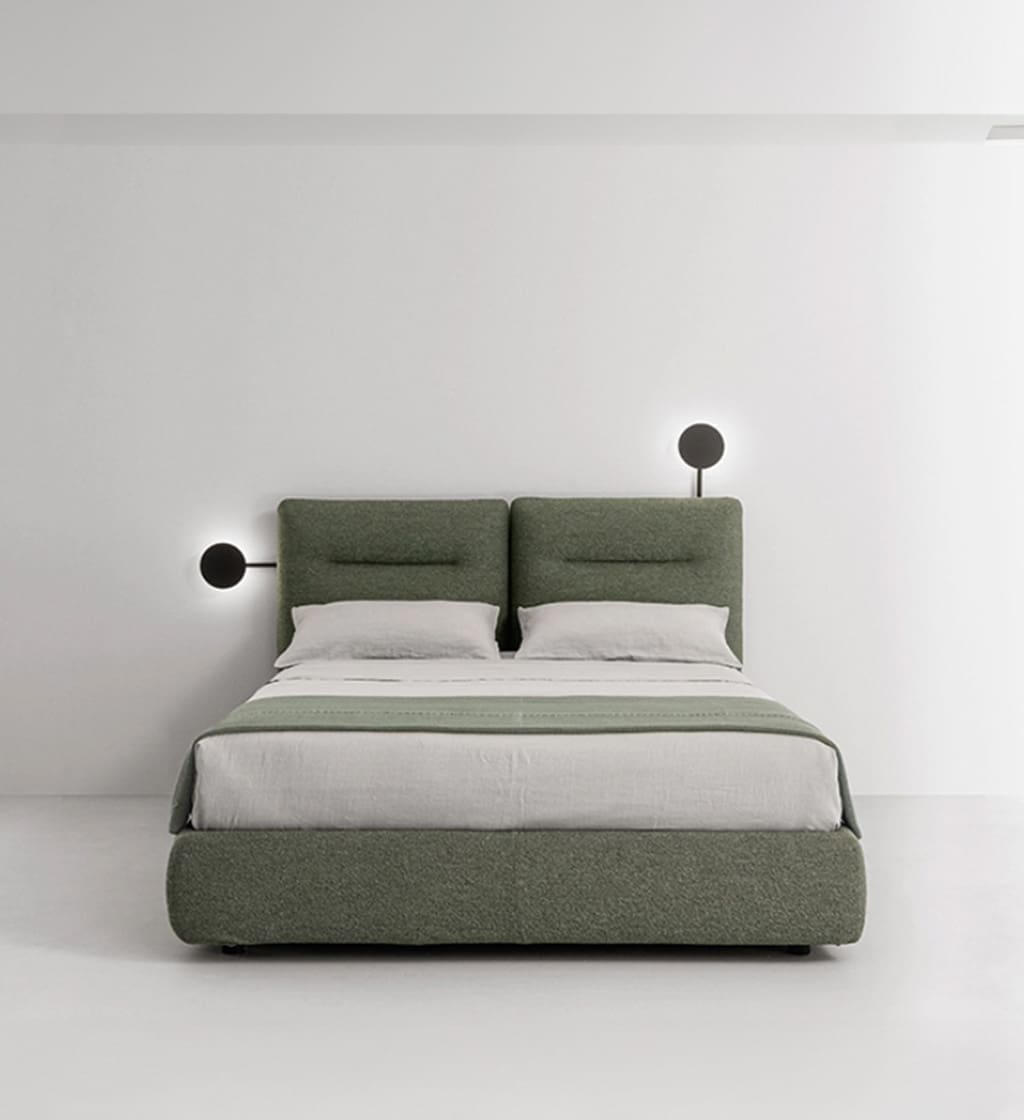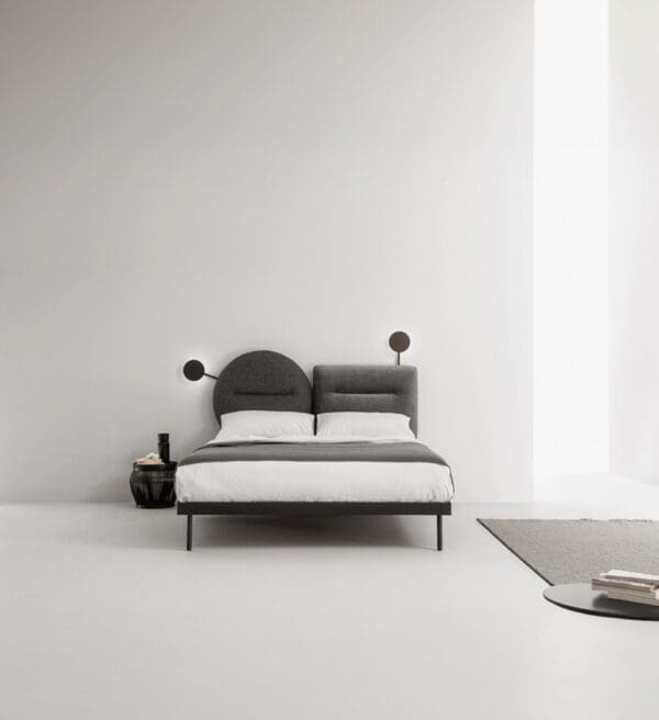 The utmost expression of Caccaro’s tailoring arrives in the bedroom area with Bishape, a unique bed for customisation and expression of style. The headboard and the frame are independent and the headboard itself can be split into two shapes to be combined at will: Circle-circle, Rectangle-rectangle, Circle-rectangle. You can also decide to match the bed frame of your choice, either the upholstered Box (with or without container) or the more essential lacquered Ring structure. Designer: Monica Graffeo