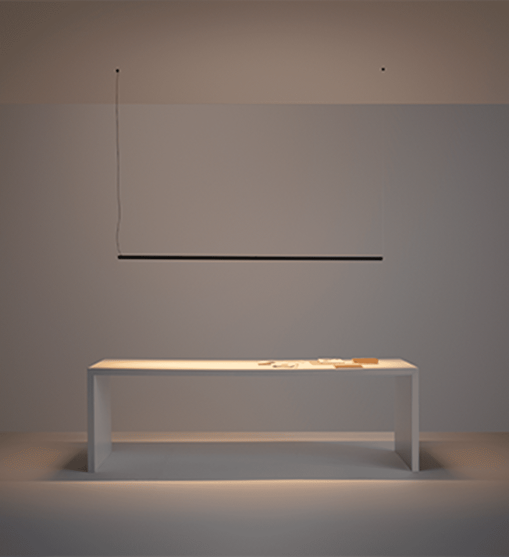 O soluție curată pentru un interior minimalist, Sticks Solo oferă o serie de corpuri de iluminat suspendate orizontal, de diferite lungimi, și integrează multiple opțiuni de conectare electrică pentru a se îmbina perfect cu arhitectura din jur.