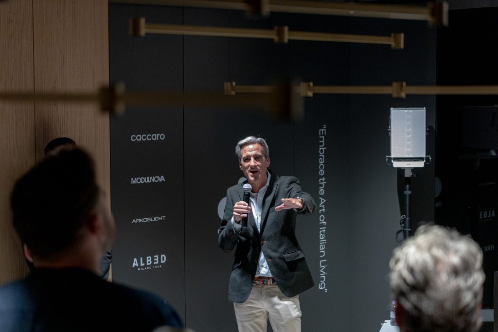 Pe 15 octombrie 2025, am inaugurat noul nostru showroom din București printr-un eveniment care a reunit peste 200 de invitați din domeniul designului de interior. Alături de noi au fost 12 reprezentanți ai companiilor din Italia și Spania, inclusiv ownerii Modulnova, Caccaro și Albed.