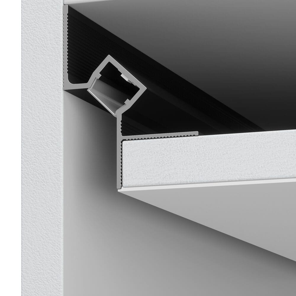Un profil unic pentru tavan, profilul pentru scafă Design Radar delimitează peretele de tavan într-un mod minimalist, cu un efect shadow gap. Este un profil negru anodizat, din aluminiu, care permite montarea unei benzi LED, devenind o alternativă la scafele demodate din rigips. În acest fel, spațiul folosit este semnificativ mai redus (în comparație cu o scafă de 20-30cm din rigips), se evită pierderile de înălțime, iar aspectul estetic obținut este net superior.