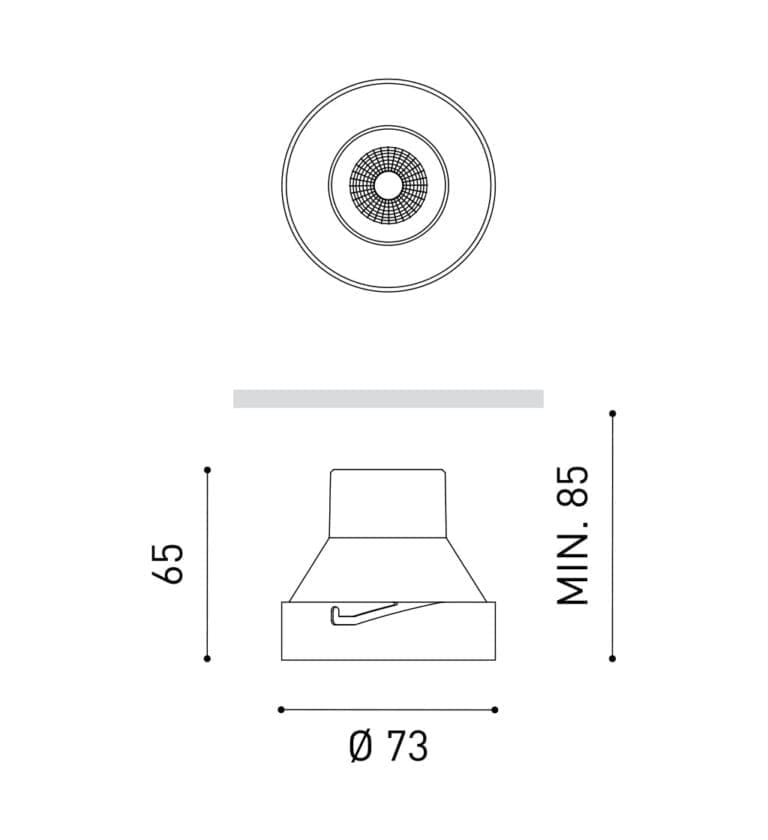 Un spot încastrat, conceput ca un punct discret de lumină în tavan ce ascunde sursa de iluminare și oferă confort vizual maxim. Pentru a realiza acest lucru, este prevăzut cu un ecran anti-orbire și un micro-reflector, special conceput să genereze un fascicul de lumină perfect definit.